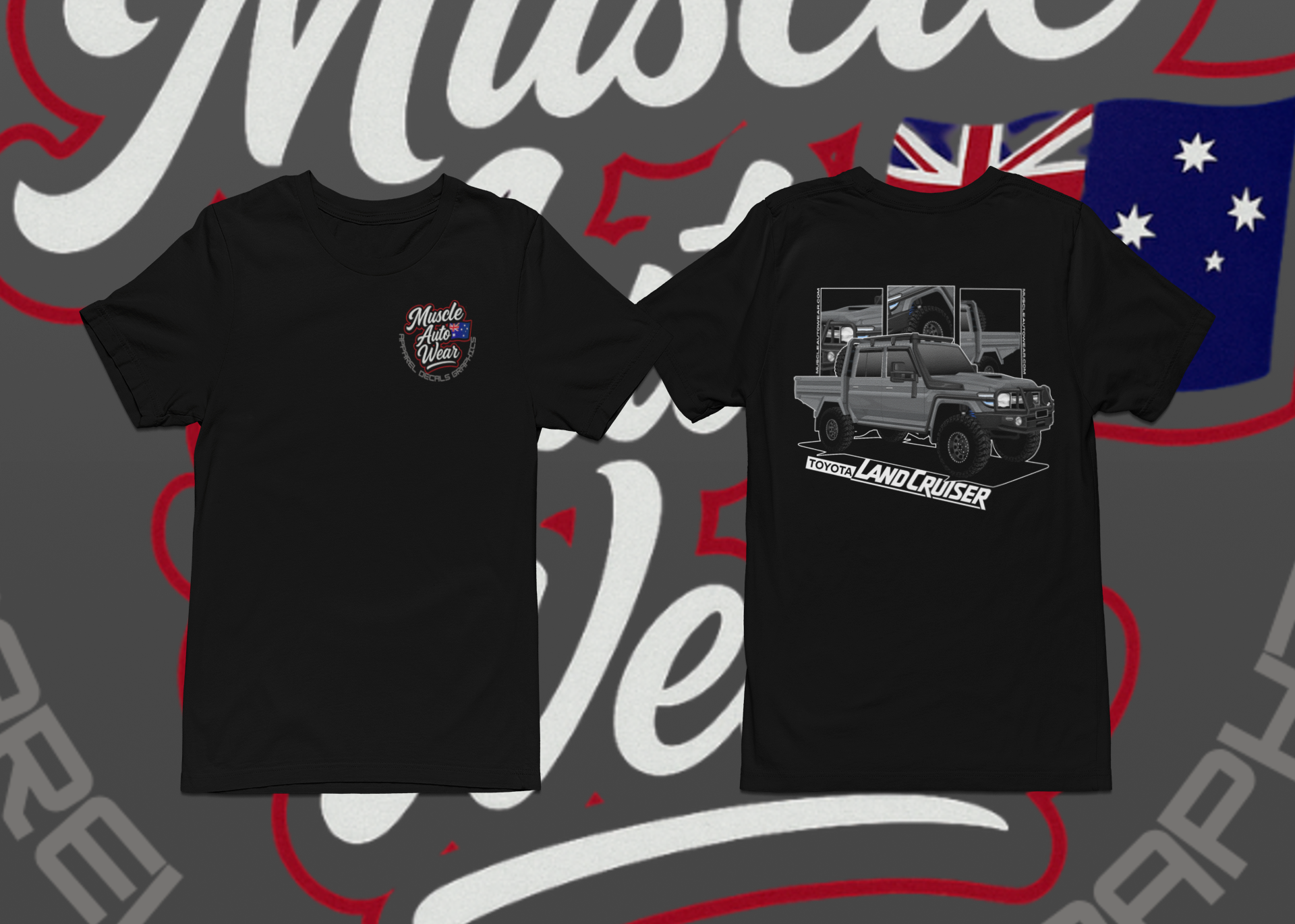 FRONT AND BACK PRINT, TOYOTA LANDCRUISER DUAL CAB,PREMIUM T SHIRT,AUSSIE 4X4